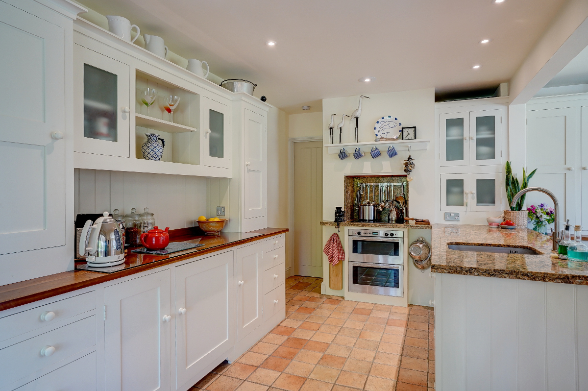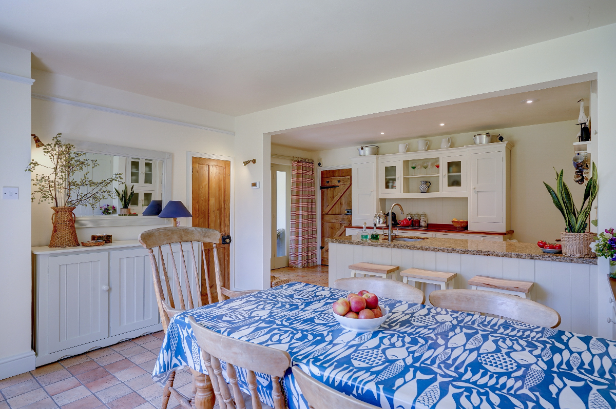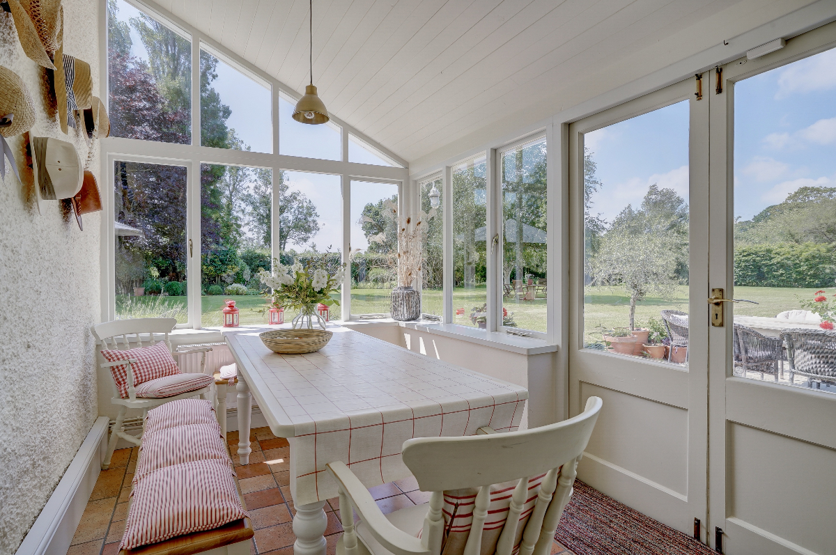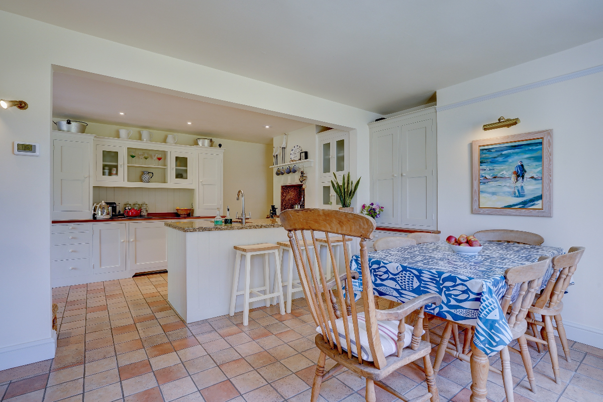 Guests enter the house via the conservatory which opens onto a west facing terrace and garden. Here you'll find a large dining table perfect for celebrating special occasions or just getting together with family and friends. The well equipped kitchen/diner has a Neff cooker, fridge, microwave, dishwasher and Nespresso machine. There is a further pantry with an additional fridge/freezer adjacent to the kitchen and a downstairs WC.