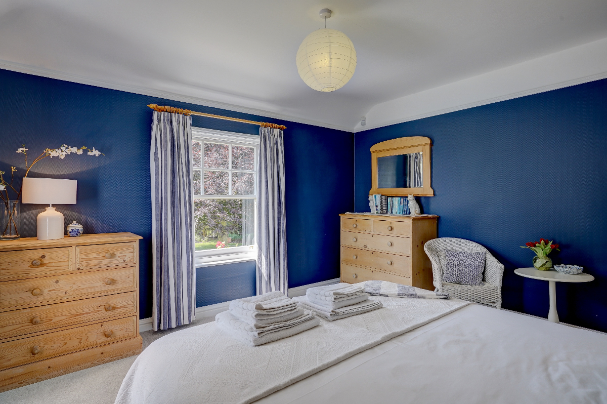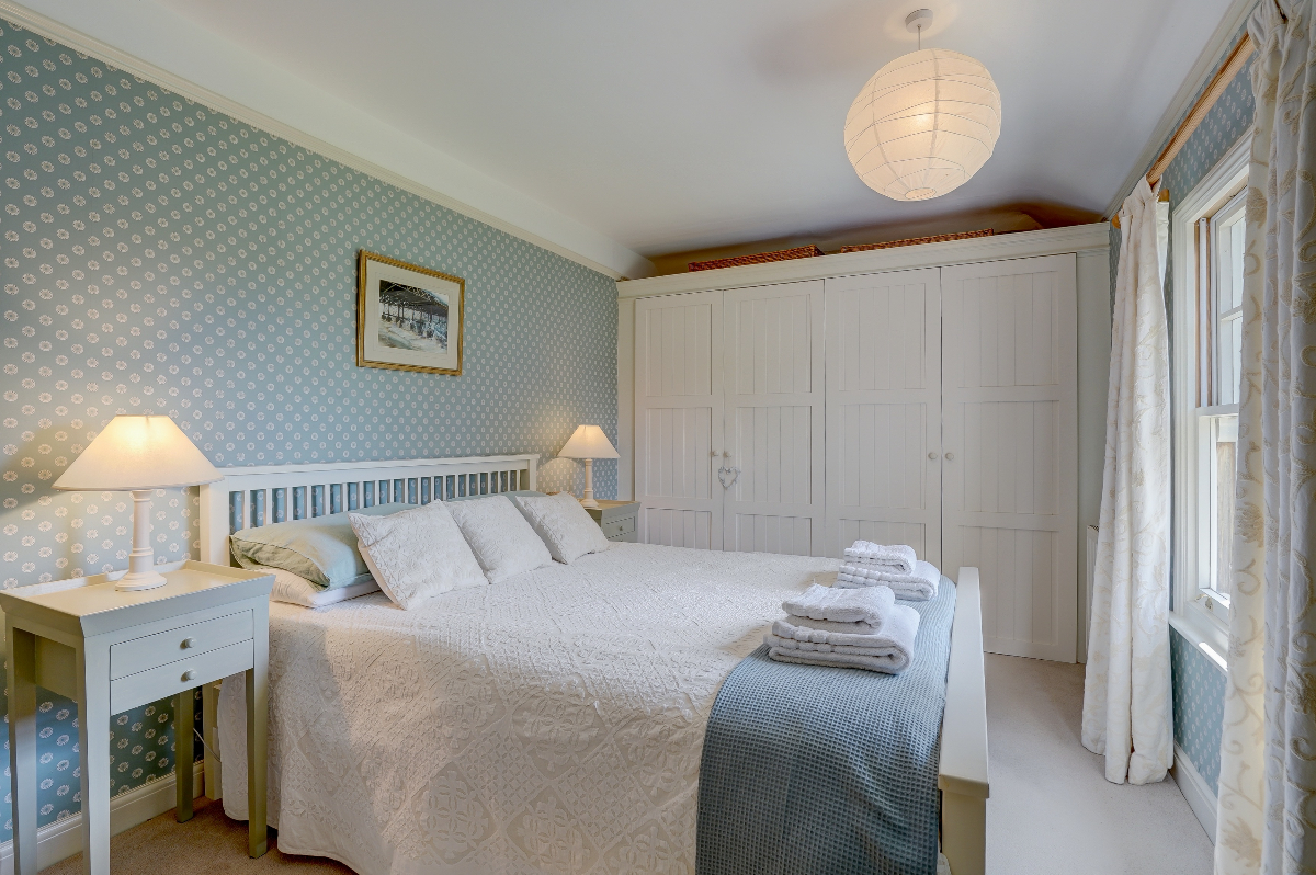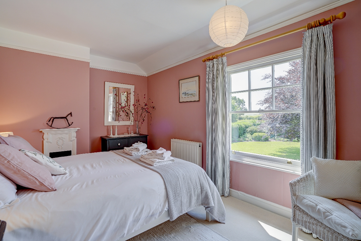 Upstairs you'll find 5 well appointed bedrooms. The main bedroom has fantastic dual aspect views across the large garden, a kingsize bed, and en suite shower room with a large walk-in shower, basin and WC. There are two further south facing bedrooms each with a kingsize bed and views of the garden. At the back of the house there is one bedroom with twin single beds, and another bedroom with once single bed.