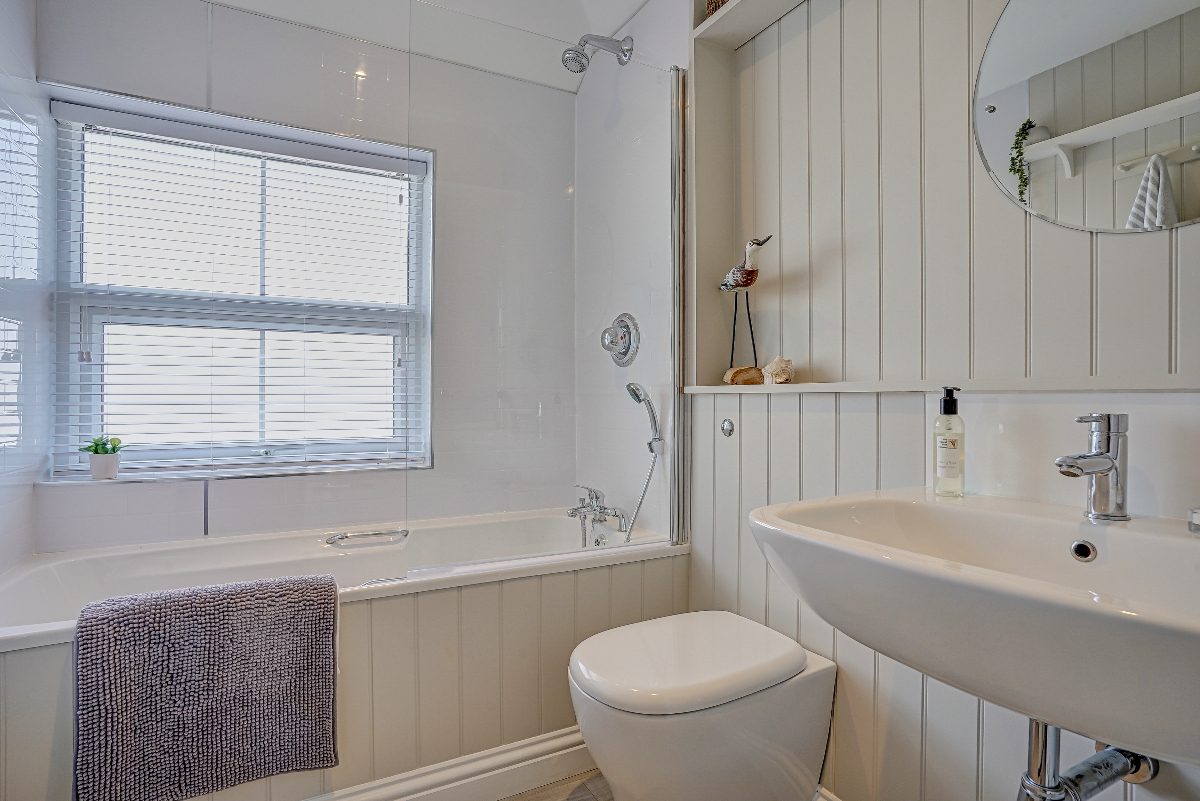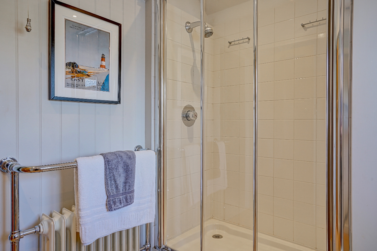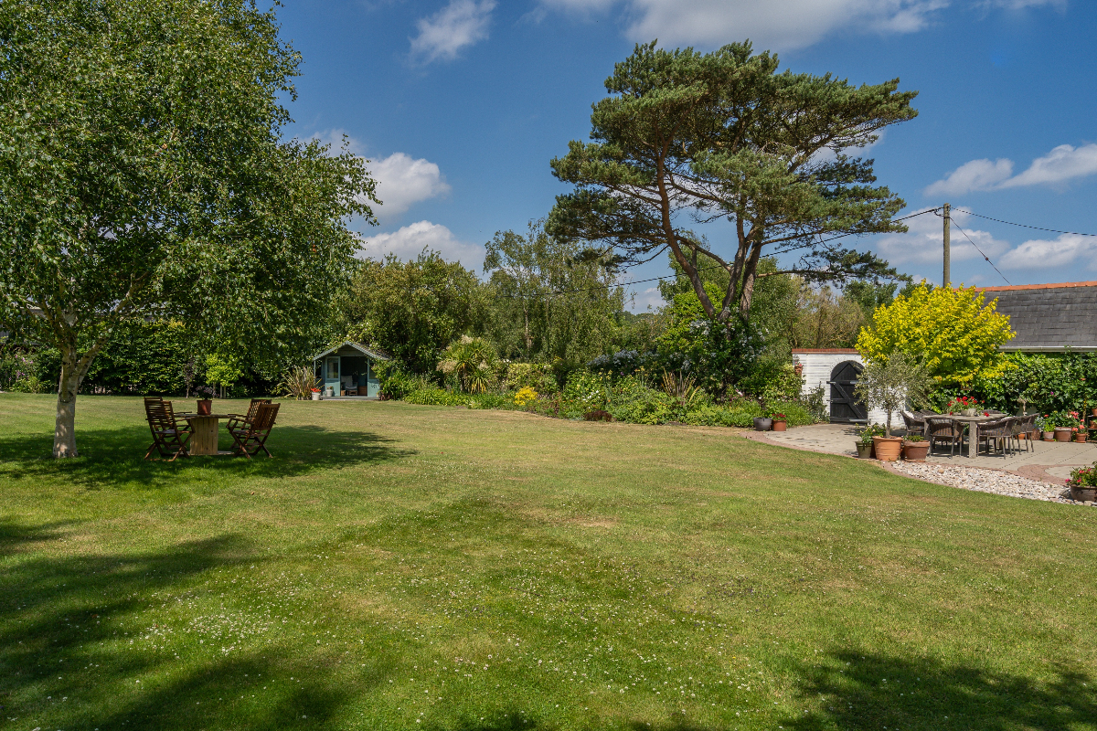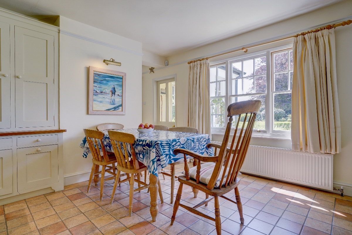 Upstairs you'll find 5 well appointed bedrooms. The main bedroom has fantastic dual aspect views across the large garden, a kingsize bed, and en suite shower room with a large walk-in shower, basin and WC. There are two further south facing bedrooms each with a kingsize bed and views of the garden. At the back of the house there is one bedroom with twin single beds, and another bedroom with once single bed.