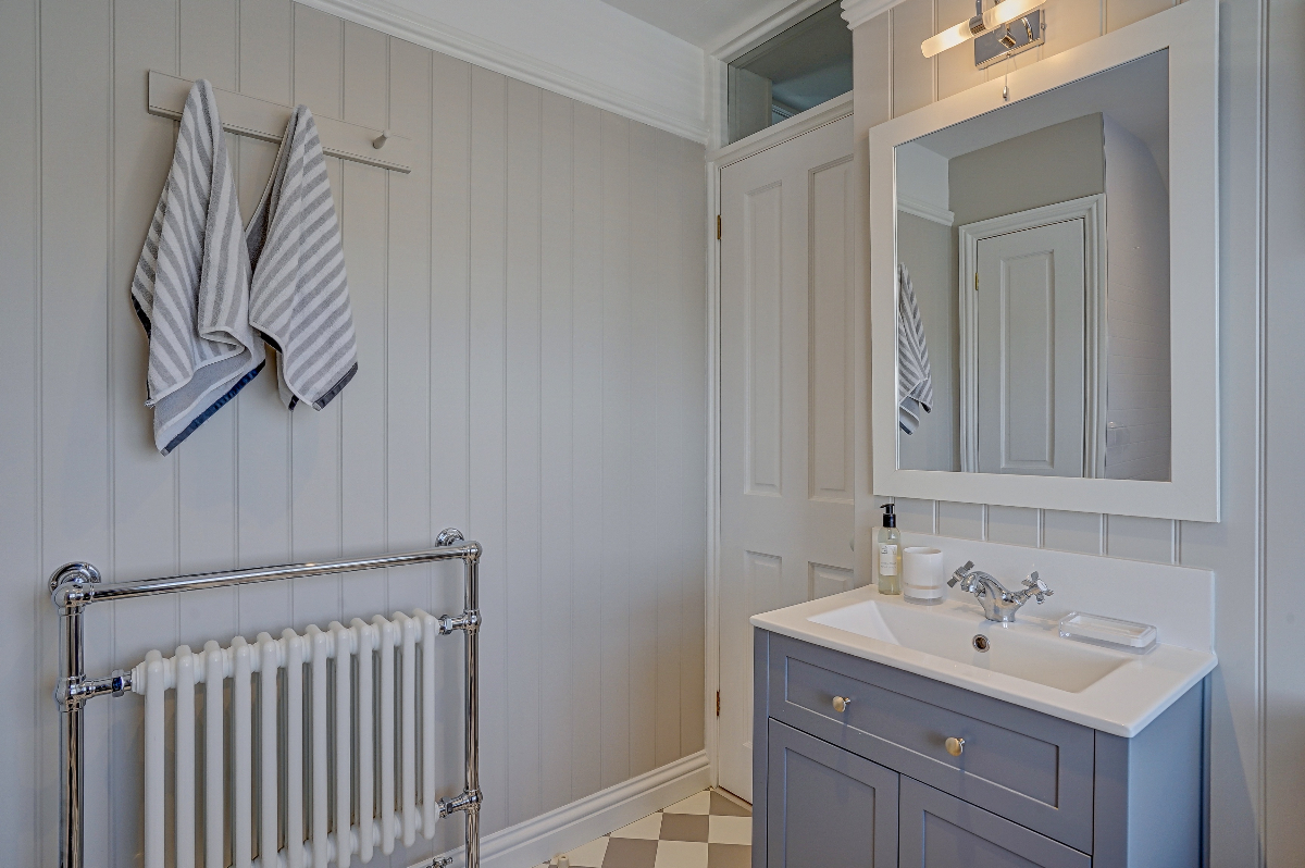 There are two further bathrooms upstairs: one with a walk in shower, wash basin and WC, and the other family bathroom contains a bath with shower over it, wash basin and WC. In total there are 4 bathrooms (1 en suite) at The White House.