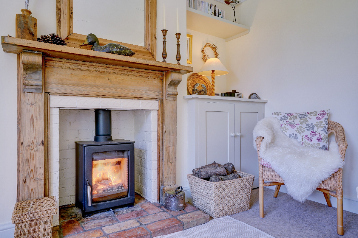 The cosy living room has a Woodburner, TV and comfortable sofas - the ideal spot to relax.